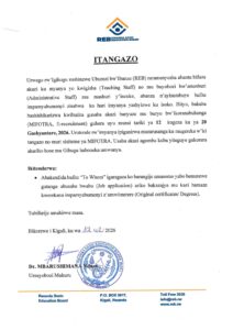 Urwego rw’Igihugu rushinzwe Uburezi bw’Ibanze (REB) ruratangariza abantu bose bujuje ibisabwa kandi bifuza gukora mu rwego rw’uburezi ko hashyizwe ku isoko imyanya myinshi y’akazi mu mashuri y’incuke, abanza ndetse n’ayisumbuye. Iyi myanya irimo iy’abarimu (Teaching Staff) ndetse n’iy’abayobozi n’abakozi bashinzwe imirimo itandukanye mu buyobozi bw’amashuri (Administrative Staff).